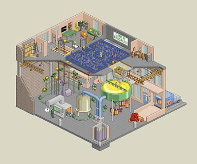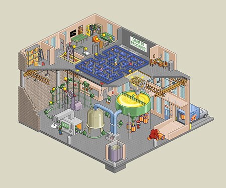 Well... it was a marathon week of pixel pushing. The show is tomorrow night and the art work is off to the printers just in the nick of time! This was a ton of work, but I'm going to call this "version 1" because there are still more details I want to add. So I'll do another print later when It's done. It's impossible to see all the details clearly here, but here is a close up of the storage room at the top left-hand corner: